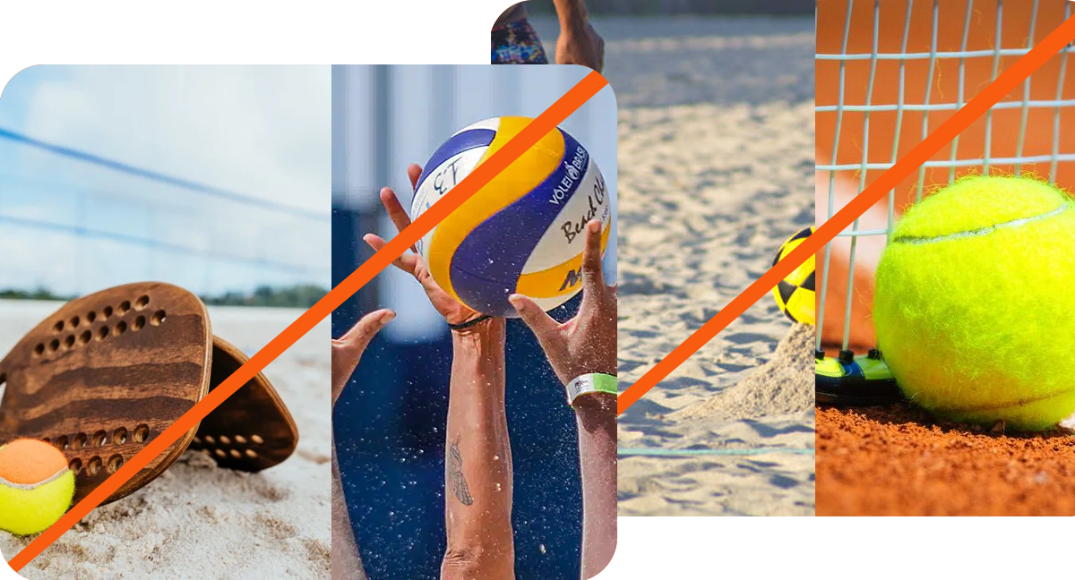 Contamos com quadras preparadas para Beach Tennis, Vôlei de Praia, Futevôlei e Tênis de Campo (saibro), garantindo conforto, segurança e o melhor desempenho em cada modalidade